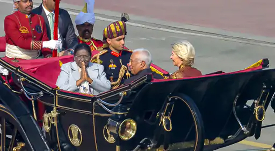 ਭਾਰਤ ਭਰ ਵਿਚ ਅੱਜ 26 ਜਨਵਰੀ ਨੂੰ ਗਣਤੰਤਰ ਦਿਵਸ ਧੂੁਮ ਧਾਮ ਨਾਲ ਮਨਾਇਆ ਗਿਆ। ਦਿੱਲੀ ’ਚ ਕਰਤੱਯਵ ਪੱਥ ’ਤੇ ਮੁੱਖ ਪਰੇਡ ਵਿਚ ਰਾਸ਼ਟਰਪਤੀ ਦਰੋਪਦੀ ਮੁਰਮੂ ਨੇ ਤਿਰੰਗਾ ਲਹਿਰਾਇਆ। ਇਸ ਮੌਕੇ ਰਾਸ਼ਟਰਪਤੀ ਨੂੰ 21 ਤੋਪਾਂ ਦੀ ਸਲਾਮੀ ਦਿੱਤੀ ਗਈ। ਇਸ ਤੋਂ ਬਾਅਦ ਗਰੁੱਪ ਕੈਪਟਨ ਸ਼ੁਭਾਂਸ਼ੂ ਸ਼ੁਕਲਾ ਨੂੰ ਅਸ਼ੋਕ ਚੱਕਰ ਨਾਲ ਸਨਮਾਨਿਤ ਕੀਤਾ ਗਿਆ। ਇਸ ਸਮਾਰੋਹ ਵਿਚ ਮੁੱਖ ਮਹਿਮਾਨ ਵਜੋਂ ਯੂਰਪੀ ਪਰਿਸ਼ਦ ਦੇ ਪ੍ਰਧਾਨ ਐਨਟੋਨੀਓ ਕੋਸਟਾ ਅਤੇ ਪ੍ਰਧਾਨ ਮੰਤਰੀ ਨਰਿੰਦਰ ਮੋਦੀ ਵੀ ਸ਼ਾਮਲ ਸਨ। ਪਰੇਡ ਵਿਚ ਵੱਖ-ਵੱਖ ਸੂਬਿਆਂ ਦੀਆਂ 30 ਝਾਕੀਆਂ ਦਿਖਾਈਆਂ ਗਈਆਂ। ਪਰੇਡ ਵਿਚ ਤਿੰਨੋਂ ਸੈਨਾਵਾਂ ਵਲੋਂ ਆਪਣੀ ਤਾਕਤ ਦਿਖਾਈ। ਸੈਨਾਵਾਂ ਵਲੋਂ ਮਿਜ਼ਾਈਲਾਂ, ਲੜਾਕੂ ਜਹਾਜ਼, ਨਵੀਂ ਬਟਾਲੀਅਨ ਅਤੇ ਅਪਰੇਸ਼ਨ ਸੰਧੂਰ ਦੇ ਦੌਰਾਨ ਇਸਤੇਮਾਲ ਘਾਤਕ ਹਥਿਆਰ ਪ੍ਰਣਾਲੀਆਂ ਦਾ ਪ੍ਰਦਰਸ਼ਨ ਕੀਤਾ।