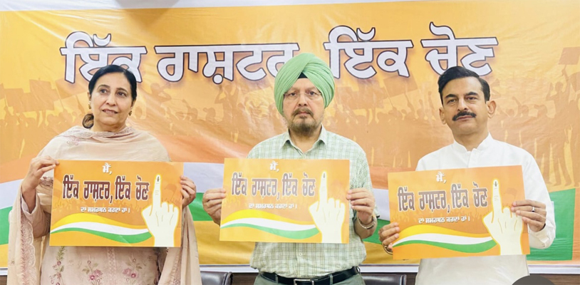 ਪੰਜਾਬ ਵਿੱਚ ਇਸ ਮੁਹਿੰਮ ਨੂੰ ਲੋਕ ਭਾਵਨਾਵਾਂ ਨਾਲ ਜੋੜਨ ਲਈ ਬੁੱਧਵਾਰ ਨੂੰ ਇੱਕ ਪੰਜਾਬੀ ਲੋਕ-ਗੀਤ ਜਾਰੀ ਕੀਤਾ ਗਿਆ, ਜਿਸ ਵਿੱਚ ਇੱਕ ਰਾਸ਼ਟਰ, ਇੱਕ ਚੋਣ ਦੀ ਧਾਰਨਾ ਨੂੰ ਆਸਾਨ ਅਤੇ ਪ੍ਰਭਾਵਸ਼ਾਲੀ ਸ਼ਬਦਾਂ ਵਿੱਚ ਲੋਕਾਂ ਤੱਕ ਪਹੁੰਚਾਇਆ ਗਿਆ ਹੈ। ਨਾਲ ਹੀ, ਗੱਡੀਆਂ ’ਤੇ ਲਗਾਉਣ ਲਈ ਵਿਸ਼ੇਸ਼ ਸਟਿਕਰ ਵੀ ਲਾਂਚ ਕੀਤੇ ਗਏ ਹਨ, ਜੋ ਹੁਣ ਬੱਸਾਂ, ਕਾਰਾਂ, ਅਤੇ ਸਕੂਟਰਾਂ ’ਤੇ ਆਮ ਦਿਖਣ ਲੱਗੇ ਹਨ। ਮੁਹਿੰਮ ਦੀ ਖਾਸ ਗੱਲ ਇਹ ਹੈ ਕਿ ਇਸ ਵਿੱਚ ਕਿਸੇ ਰਾਜਨੀਤਿਕ ਪਾਰਟੀ, ਨੇਤਾ, ਜਾਂ ਪ੍ਰਤੀਕ ਦੀ ਝਲਕ ਨਹੀਂ ਹੈ। ਇਸ ਨੂੰ ਪੂਰੀ ਤਰ੍ਹਾਂ ਗੈਰ-ਰਾਜਨੀਤਿਕ ਰੂਪ ਵਿੱਚ ਪੇਸ਼ ਕੀਤਾ ਜਾ ਰਿਹਾ ਹੈ, ਤਾਂ ਜੋ ਲੋਕਾਂ ਵਿੱਚ ਇਹ ਭਾਵਨਾ ਜਾਗੇ ਕਿ ਇਹ ਸਿਰਫ਼ ਕਿਸੇ ਸਰਕਾਰ ਦਾ ਨਹੀਂ, ਸਗੋਂ ਹਰ ਨਾਗਰਿਕ ਦਾ ਮੁੱਦਾ ਹੈ।