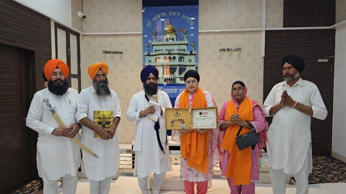 ਸ੍ਰੀ ਅਕਾਲ ਤਖ਼ਤ ਸਾਹਿਬ ਦੇ ਕਾਰਜਕਾਰੀ ਜਥੇਦਾਰ ਗਿਆਨੀ ਕੁਲਦੀਪ ਸਿੰਘ ਗੜਗੱਜ ਨੇ ਡੇਢ ਮਿੰਟ ਵਿੱਚ ਅੱਠ ਕਵਿਤਾਵਾਂ ਲਿਖਣ ਦਾ ਰਿਕਾਰਡ ਬਣਾਉਣ ਵਾਲੀ 18 ਸਾਲਾ ਗੁਰਸਿੱਖ ਬੱਚੀ ਗੁਰਸ਼ਰਨ ਕੌਰ ਬੰਡਾਲਾ ਦਾ ਸਨਮਾਨ ਕੀਤਾ ਹੈ। ਗੱੜਗੱਜ ਨੇ ਅਕਾਲ ਤਖਤ ਸਕੱਤਰੇਤ ਵਿਖੇ ਇਸ ਗੁਰਸਿੱਖ ਬੱਚੀ ਨੂੰ ਸਿਰੋਪਾਓ ਤੇ ਸ੍ਰੀ ਸਾਹਿਬ ਦੇ ਕੇ ਸਨਮਾਨ ਕੀਤਾ। ਇਸ ਮੌਕੇ ਗੁਰਸ਼ਰਨ ਕੌਰ ਨੇ ਜਥੇਦਾਰ ਗੜਗੱਜ ਨੂੰ ਆਪਣੇ ਵੱਲੋਂ ਲਿਖੀ ਕਵਿਤਾਵਾਂ ਦੀ ਇੱਕ ਪੁਸਤਕ ਵੀ ਭੇਟ ਕੀਤੀ। ਗੁਰਸ਼ਰਨ ਕੌਰ ਨੇ ਲੰਘੇ ਦਿਨੀਂ ਡੇਢ ਮਿੰਟ ਵਿੱਚ ਅੱਠ ਕਵਿਤਾਵਾਂ ਮੌਕੇ ਉੱਤੇ ਹੀ ਕਲਮ ਨਾਲ ਲਿਖ ਕੇ ਇੰਡੀਆ ਬੁੱਕ ਆਫ਼ ਰਿਕਾਰਡਜ਼ ਵਿੱਚ ਆਪਣਾ ਨਾਂ ਦਰਜ ਕਰਵਾਇਆ ਸੀ। ਉਹ ਦੁਨੀਆ ਅੰਦਰ ਅਜਿਹਾ ਕਰਨ ਵਾਲੀ ਪਹਿਲੀ ਗੁਰਸਿੱਖ ਤੇ ਦਸਤਾਰਧਾਰੀ ਬੱਚੀ ਹੈ। ਜਥੇਦਾਰ ਗੜਗੱਜ ਨੇ ਕਿਹਾ ਕਿ ਪਹਿਲੇ ਪਾਤਸ਼ਾਹ ਸ੍ਰੀ ਗੁਰੂ ਨਾਨਕ ਦੇਵ ਜੀ ਨੇ ਵੀ ਗੁਰਬਾਣੀ ਵਿੱਚ ਬੀਬੀਆਂ ਅਤੇ ਭੈਣਾਂ ਦੇ ਹੱਕ ਦੀ ਗੱਲ ਕੀਤੀ ਹੈ। ਉਨ੍ਹਾਂ ਕਿਹਾ ਕਿ ਸਿੱਖ ਇਤਿਹਾਸ ਦੇ ਅੰਦਰ ਵੀ ਬੀਬੀਆਂ ਦਾ ਵਿਸ਼ੇਸ਼ ਯੋਗਦਾਨ ਹੈ।