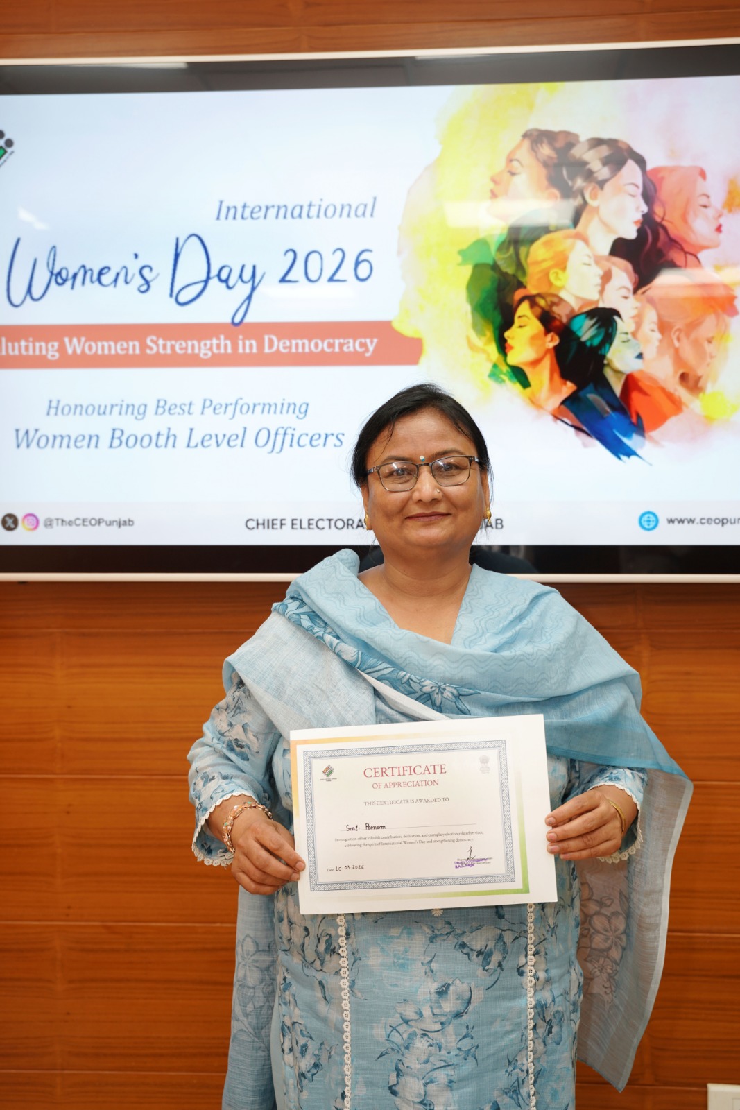 ਅੰਤਰਰਾਸ਼ਟਰੀ ਮਹਿਲਾ ਦਿਵਸ ਮੌਕੇ, ਜ਼ਮੀਨੀ ਪੱਧਰ 'ਤੇ ਚੋਣ ਪ੍ਰਕਿਰਿਆ ਨੂੰ ਮਜ਼ਬੂਤ ਕਰਨ ਵਿੱਚ ਅਹਿਮ ਭੂਮਿਕਾ ਨਿਭਾਉਣ ਵਾਲੀਆਂ ਮਹਿਲਾ ਬੂਥ ਲੈਵਲ ਅਫਸਰਾਂ (ਬੀਐਲਓਜ਼) ਦੇ ਸਮਰਪਣ ਨੂੰ ਮਾਨਤਾ ਅਤੇ ਸਨਮਾਨ ਦੇਣ ਲਈ ਪੰਜਾਬ ਦੇ ਸਾਰੇ ਜ਼ਿਲ੍ਹਿਆਂ ਵਿੱਚ ਵਿਸ਼ੇਸ਼ ਸਮਾਗਮ ਕਰਵਾਏ ਗਏ।